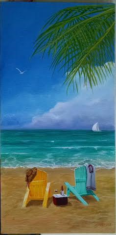 Buckeye's and Coconuts, New owner Tom and Joyce Boyer, Bokeelia, Florida 12x24, Acrylic on Gallery Wrapped canvas, 12 x 24